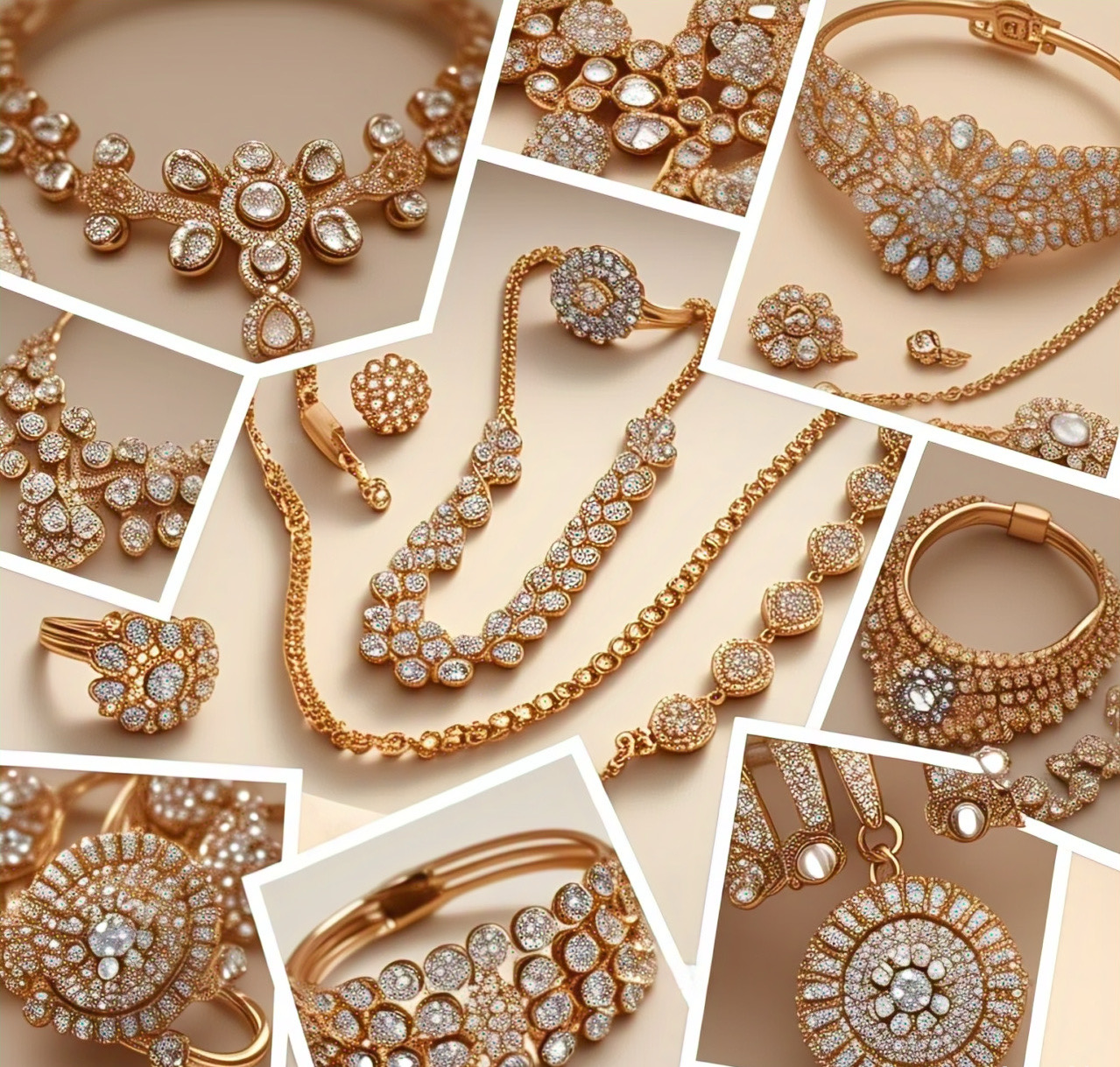 1.Cubic Zirconia (CZ) jewellery: Features synthetic diamonds that resemble real diamonds.