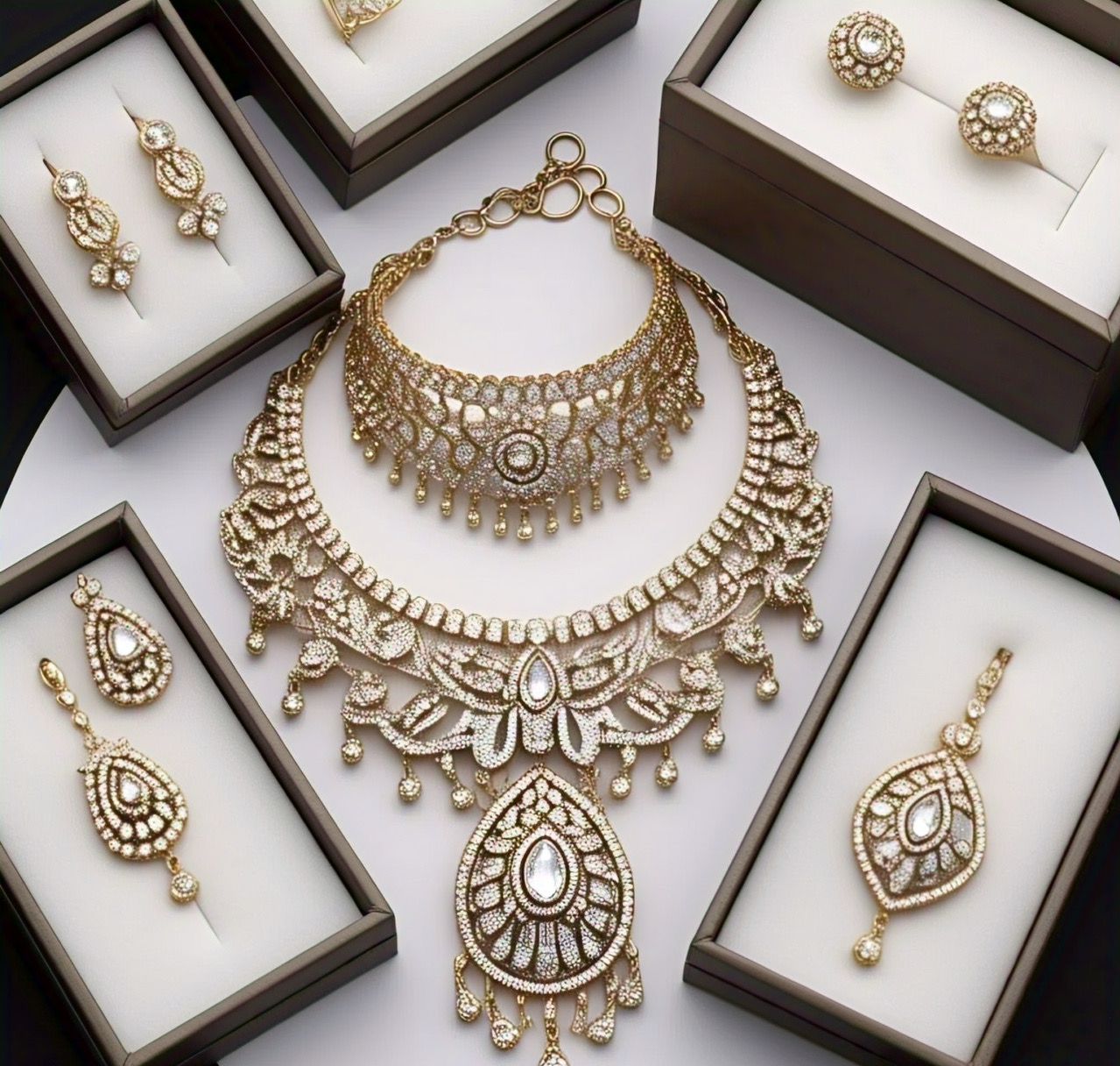 1.Cubic Zirconia (CZ) jewellery: Features synthetic diamonds that resemble real diamonds.
